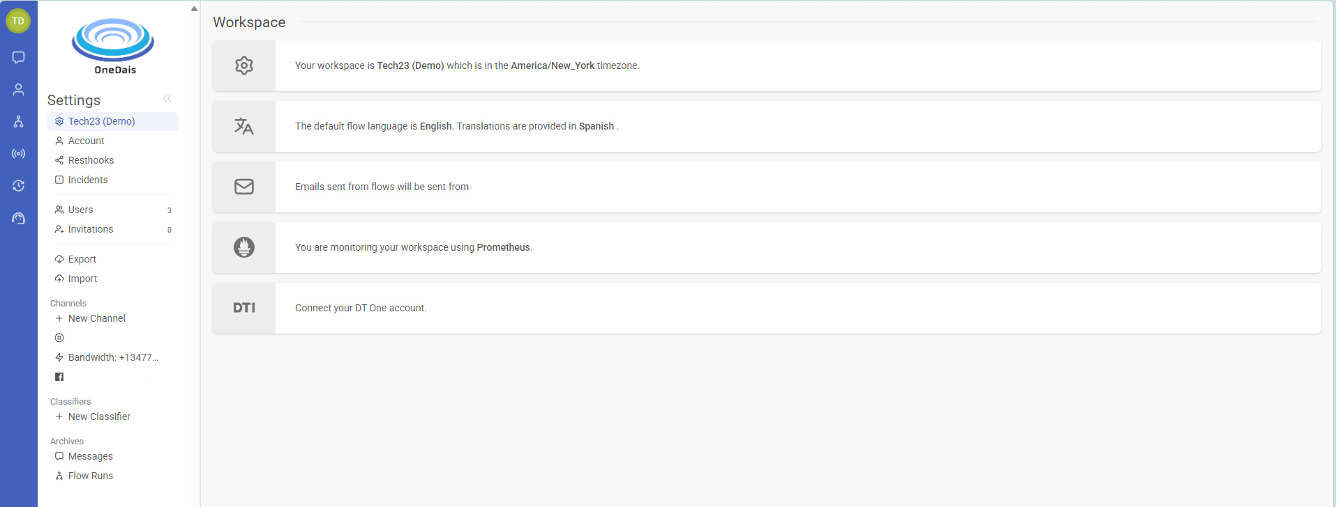Your workspace settings page is the heart of your workspace. From here, you can: